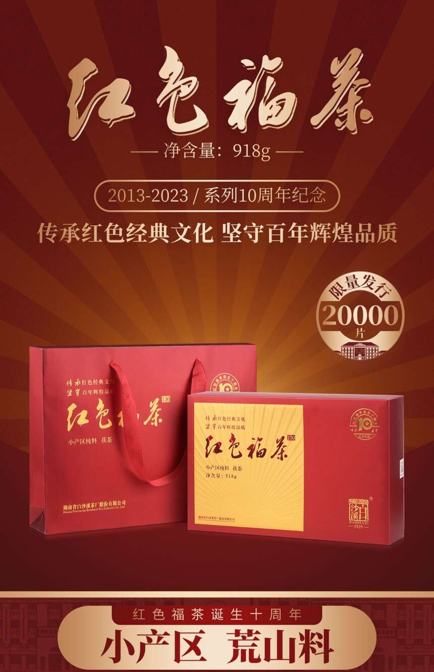 白沙溪湖南安化正品黑茶2019年老料紅色福茶金花獲磚茶918g盒