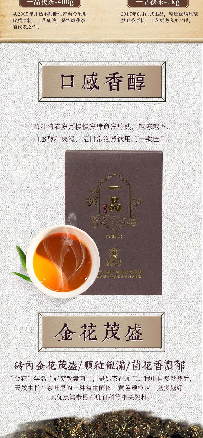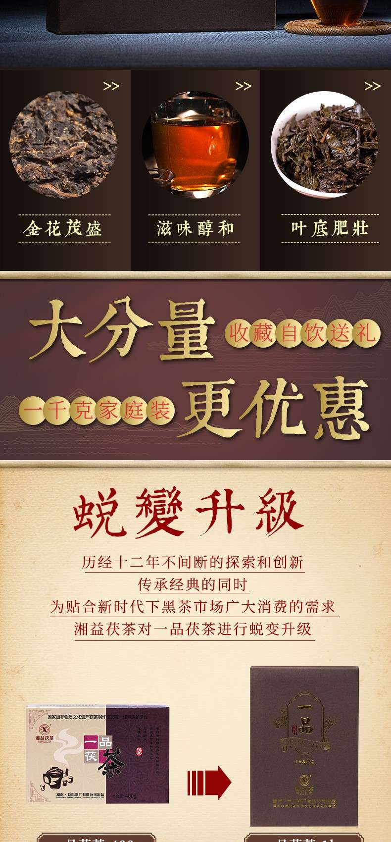 湘益獲茶湖南安化黑茶獲磚金花一品獲茶1kg益陽茶廠