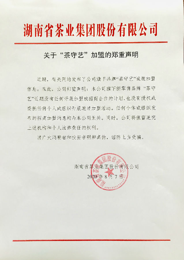 關(guān)于“茶守藝”加盟的鄭重聲明