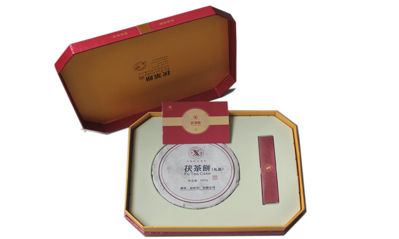 ??“湘益”茯茶均采用優(yōu)質(zhì)黑毛茶為原料,經(jīng)篩分投入拼配篩制—汽蒸渥堆—壓制定型—發(fā)花—干燥出烘—包裝入庫等工序精制而成,茶葉金花普茂,湯色紅濃,滋味醇厚,具有明顯的調(diào)節(jié)新陳代謝、降脂降糖功效。