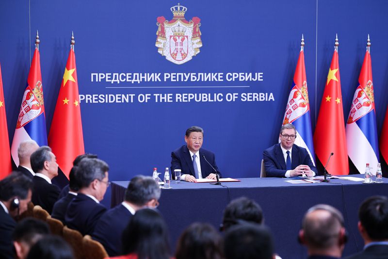 習近平指出,2016年我對塞爾維亞進行國事訪問,受到塞爾維亞領導人和人民的熱情接待,令我至今難忘。時隔8年再次到訪,我很高興看到,在武契奇總統領導下,塞爾維亞經濟社會蓬勃發展,綜合國力和國際地位顯著提高,人民生活水平不斷提升。中國和塞爾維亞是真朋友、好伙伴,兩國政治互信堅如磐石,務實合作提質升級,多邊協調密切順暢,鐵桿友誼歷久彌新。