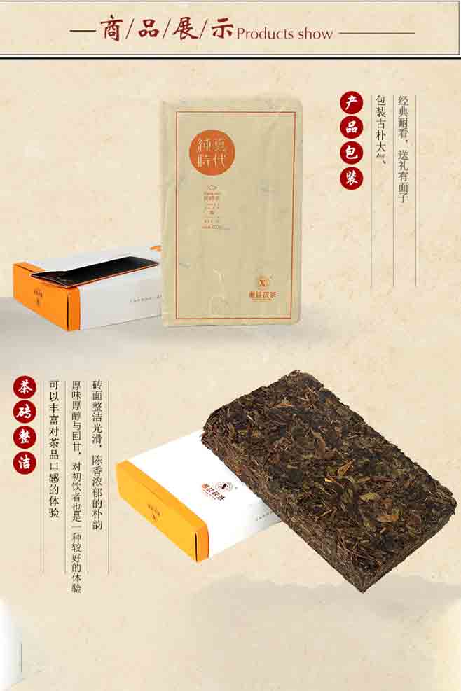 益陽茶廠是全國茯磚茶生產廠家和茯磚茶原料儲備承儲企業,創建于1953年,“湘益”素有“古絲綢之路上的神秘之茶”、“西北少數民族的生命之茶”的美譽,其“茯磚茶手筑工藝”已被列入國家級非物質文化遺產保護名錄。 ??“湘益”茯茶均采用優質黑毛茶為原料,經篩分投入拼配篩制—汽蒸渥堆—壓制定型—發花—干燥出烘—包裝入庫等工序精制而成,茶葉金花普茂,湯色紅濃,滋味醇厚,具有明顯的調節新陳代謝、降脂降糖功效。